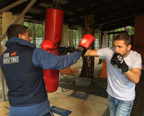 Пару минут спустя отец с сыном наглядно продемонстрировали приобретенные навыки, надев боксерские перчатки и нанося друг другу удары. Понарошку, конечно, по-семейному.