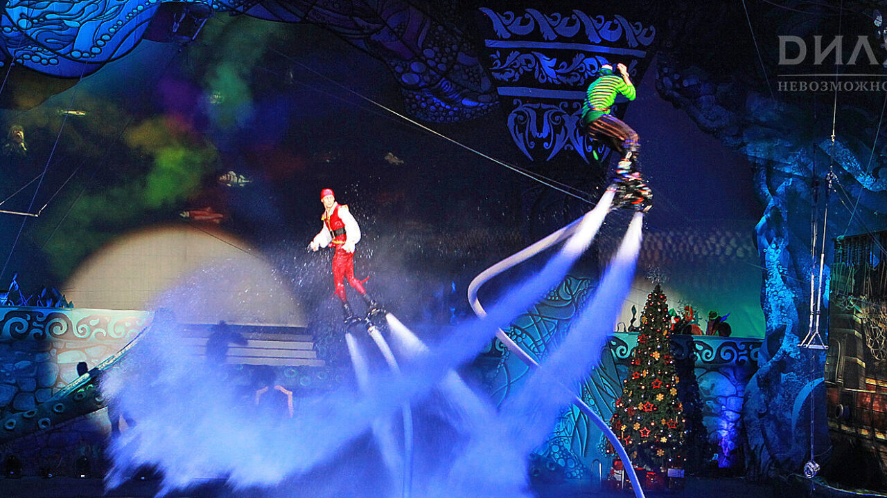 Наверное, все видели в Интернете захватывающие ролики полетов человека над водой. Флайборд был изобретен совсем недавно, в 2005 году. Флайбордисты, как дельфины, могут плавать и нырять под водой, подниматься на большую высоту и свободно летать подобно супергерою, выполняя при этом невообразимые трюки. В новогоднем шоу можно будет не только понаблюдать за удивительными трюками этих спортсменов, но и посмотреть настоящую битву с ними.