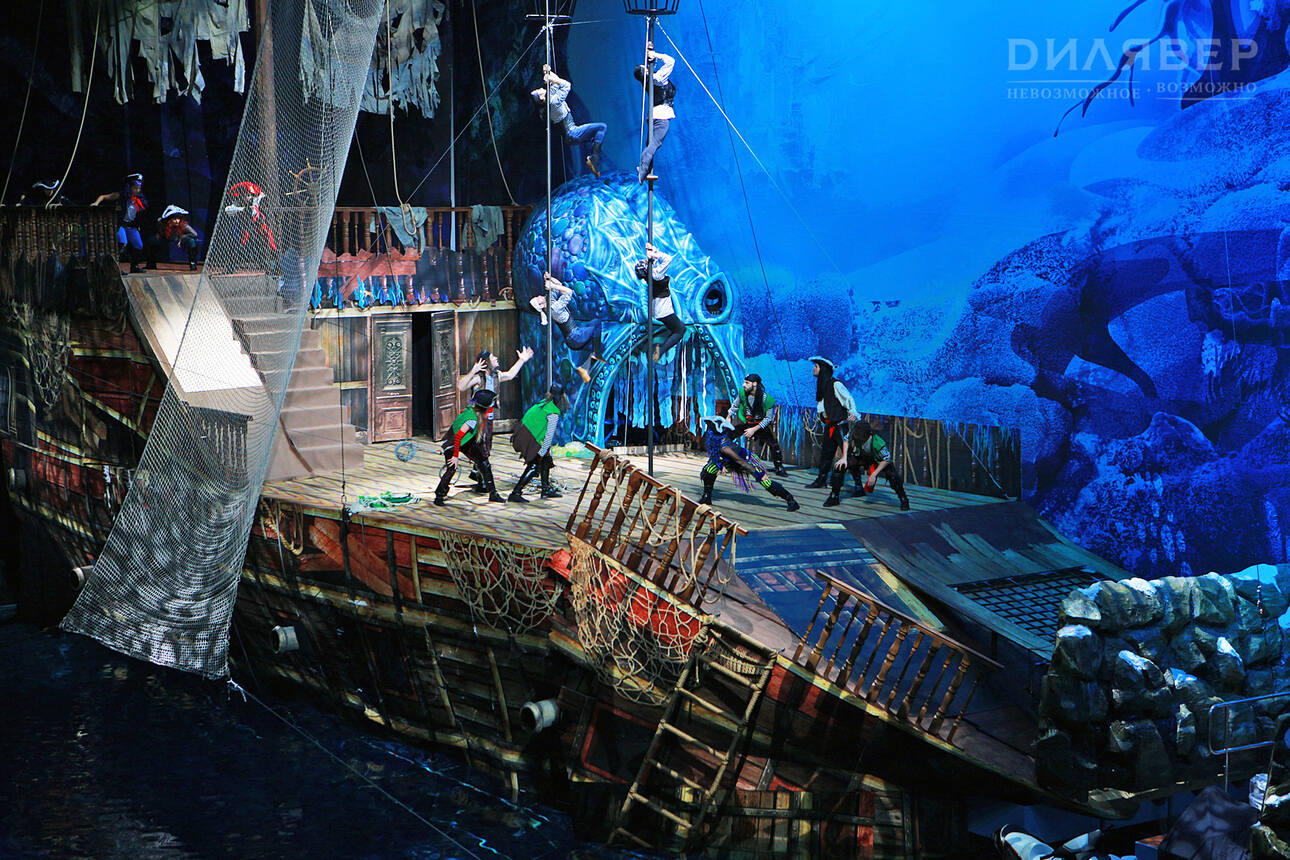 Многие согласятся с тем, что на новогодние представления хочется ходить всей семьей, чтобы вместе радоваться празднику, Деду Морозу и Снегурочке. Но зачастую бывает так, что взрослым неинтересно смотреть детские представления, а детям непонятны шоу для более старших зрителей. Но кто ищет, тот всегда найдет. В бассейне спорткомплекса «Олимпийский» с 21 декабря по 13 января пройдет уникальное новогоднее цирковое водное шоу «Пираты и корабль-призрак», которое удивит как детей, так и родителей, бабушек и дедушек. Оно объединяет в себе самые разнообразные жанры: цирковое представление, водное шоу, мюзикл, каскадёрские трюки, акробатические номера, шоу-балет, артистическое плавание и даже прыжки в воду.