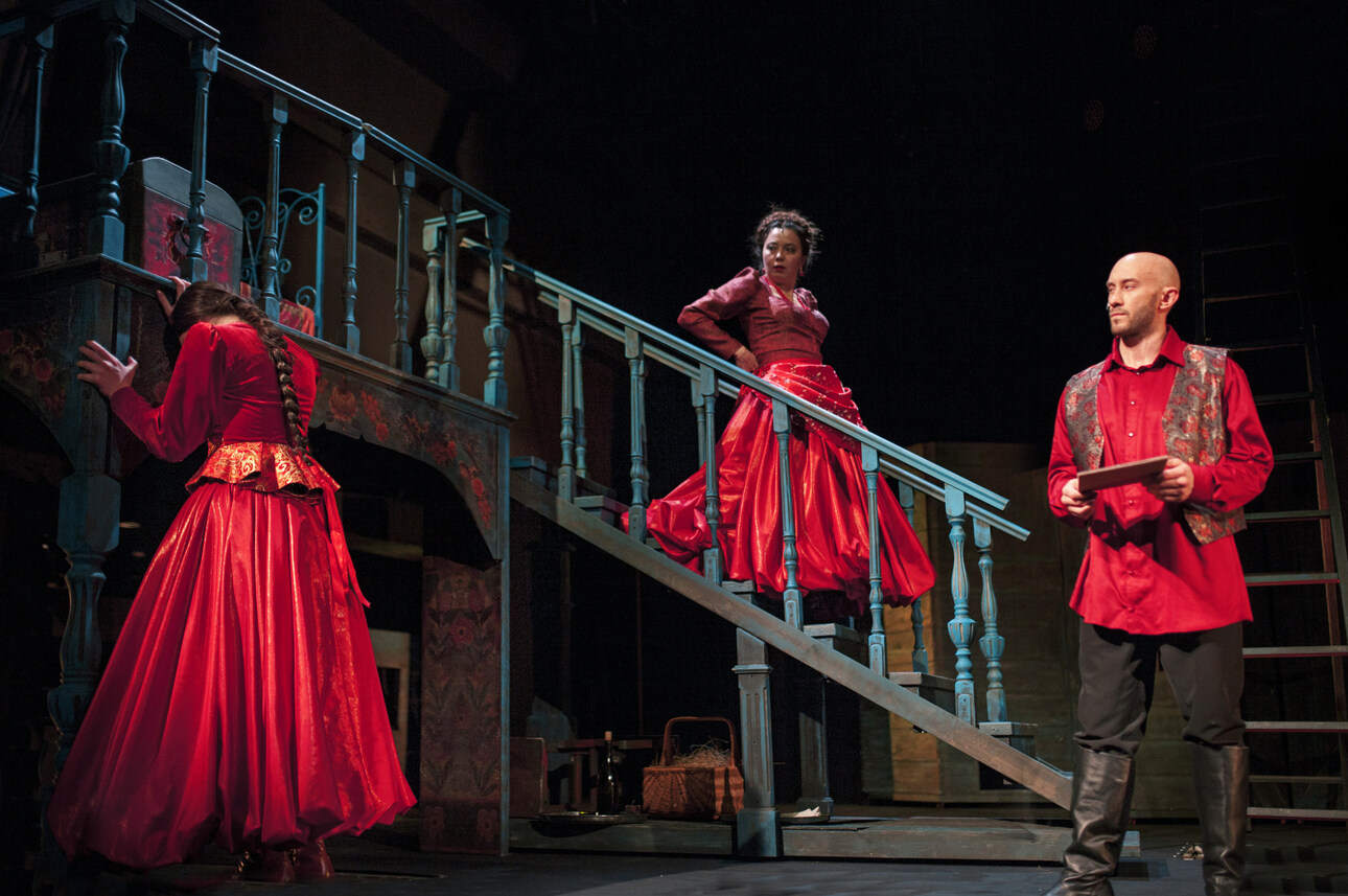 В «Театре Терезы Дуровой» острый и интригующий сюжет русской классики режиссер Ирина Пахомова подает на стыке мелодрамы, комедии и детектива. Ну а музыкальный руководитель Инна Желанная наполнила постановку фольклорным пением. И порой кажется, что «На бойком месте» — самая настоящая русская сказка, где есть место добру и злу, народным песням, гротескным характерам, ярким нарядам, удалому танцу и, конечно же, смеху.