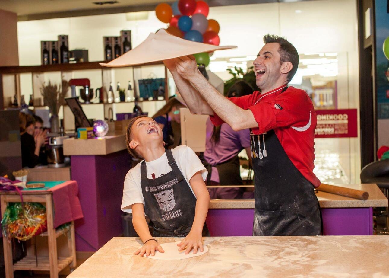 Это не просто кулинарный мастер-класс, а кулинарное приключение для детей. Большая команда поможет насладиться процессом. Шеф расскажет об особенностях кухни и покажет, как приготовить блюдо. Су-шеф — поможет, если вы растерялись в процессе. Ведущий создаст атмосферу, а бармен приготовит любимый напиток.