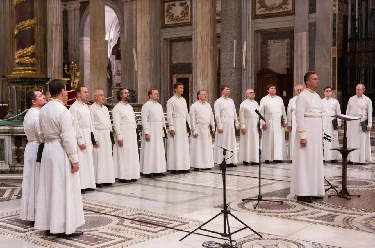 В первом отделении музыкально-поэтического действа прозвучат традиционные Пасхальные песнопения в исполнении Праздничного мужского хора Данилова монастыря.