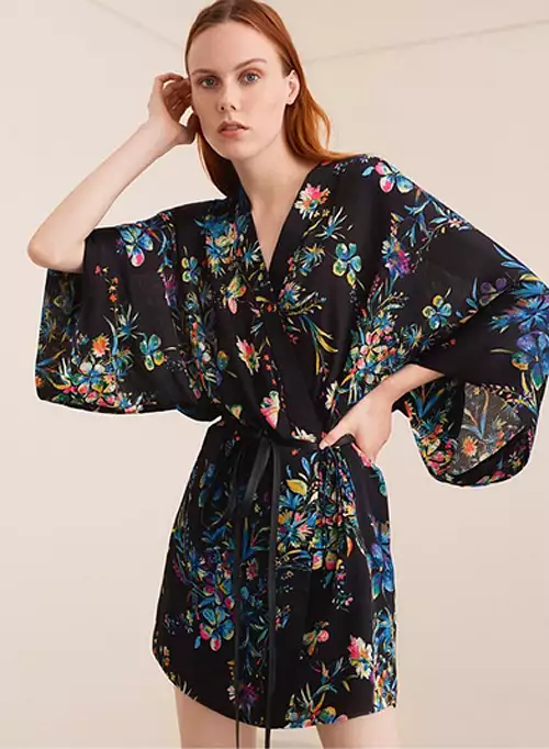 Сегодняшние кимоно не обязательно должны быть длинными. Выбирать стоит ту длину, которая максимально удачно подчеркивает положительные стороны фигуры. Например, многим отлично подходит кимоно до середины бедра или чуть ниже колена. Возможен неровный край.