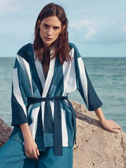 В пару к джинсам прекрасно подойдет однотонное или двуцветное кимоно. Допустимы как растительные, так и абстрактные принты, например, зигзаг, имитация венецианского стекла и так далее.