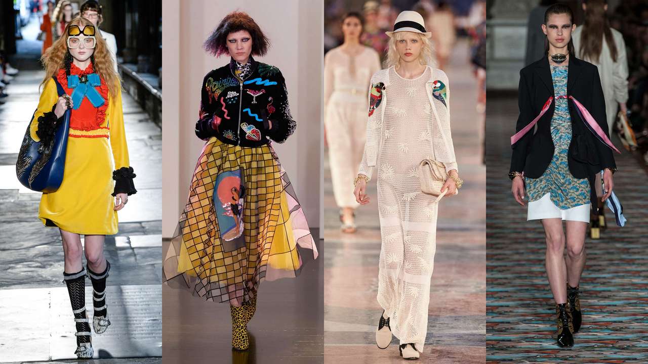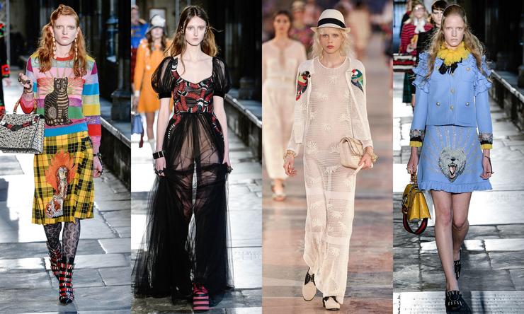Многогранный бренд Gucci и популяризатор гранжа Marc Jacobs явно вдохновлялисьагрессивной пестротой 80-х, но сумели разбавить этот концентрат динамичным комбинированием текстур. Акценты их новых коллекций мотивируют не бояться озадаченных взглядов прохожих: толика дерзости и юмора в подходе к выбору наряда определенно поможет добиться желаемого впечатления.