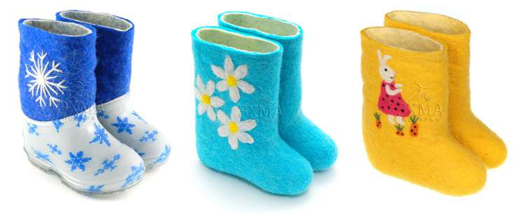 Особенно остро встает этот вопрос в случае с приобретением зимней продукции, призванной быть не только красивой и удобной, как в ситуации с летними и демисезонными моделями, но еще и очень теплой. Детки до достаточно большого возраста не способны самостоятельно контролировать состояние своего организма и часто просто не могут заявить мамам и папам о том, что у них замерзли ножки, поэтому последним необходимо быть твердо уверенными в том, что с малышом все в порядке даже в сильные морозы. Здесь практически единственным верным решением становится покупка традиционных войлочных изделий, являющихся надежной преградой даже для очень низких температур. Если раньше в отношении этой обуви можно было говорить лишь о ее комфорте, то теперь добавилась и прекрасная эстетическая составляющая: роскошные внешние характеристики демонстрируют дизайнерские детские валенки ручной работы, представленные в ярких цветах и снабженные милыми принтами сказочной и иных тематик.