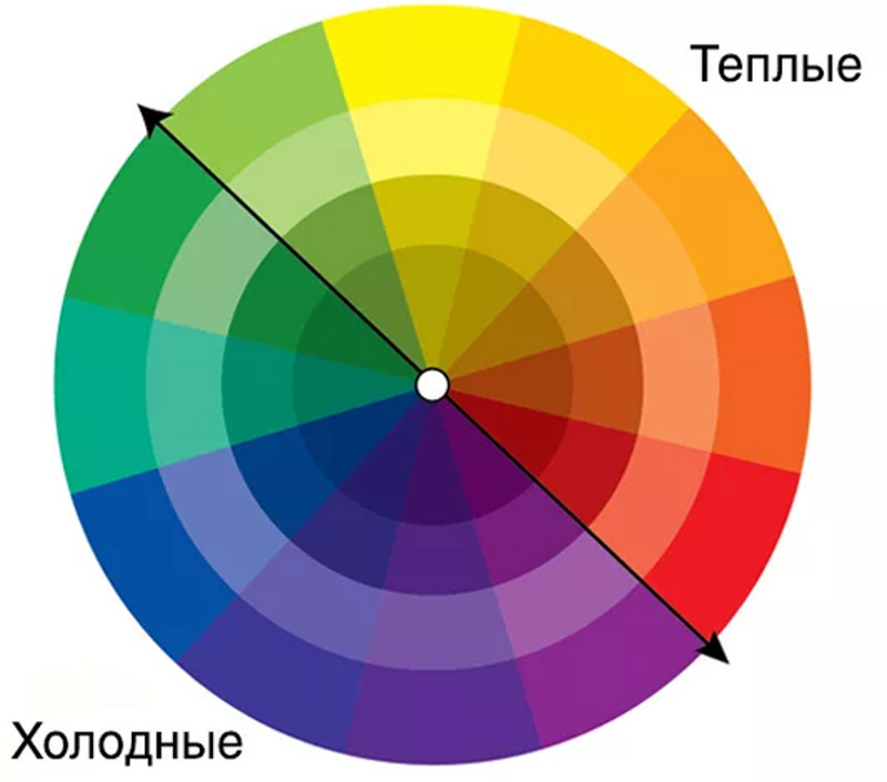 На круге Иттена сектора теплый/холодный разделены по диагонали: