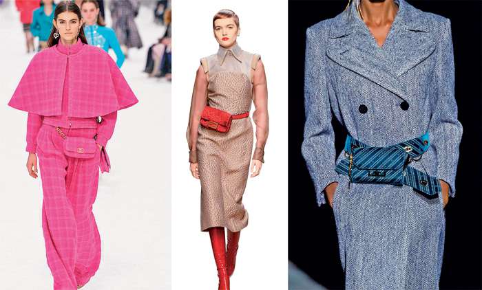 Сумки на пояс, которые поначалу буквально все модницы встретили в штыки, кажется, прижились в нашем гардеробе всерьез и надолго. Каждый новый сезон буквально все модные дома вновь выводят на подиум моделей с поясными сумками. Теперь они выполняют роль ремня или просто яркой детали к монохрому.
