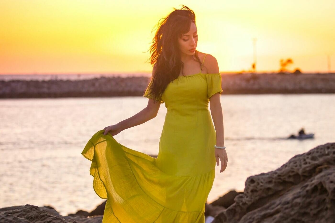 Высокая и стройная. Таким девушкам можно смело надевать платье в пол из струящегося шелка вместе с жемчужными сережками и босоножками на небольшом каблуке. Эта лёгкая ткань облегает тело и подчёркивает достоинства фигуры ровно в тех местах, где это нужно — на талии, в спине.