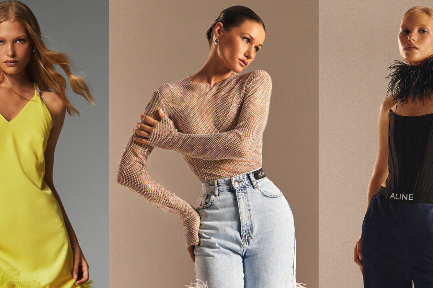 В осенне-зимней коллекции 2022/23 ALine мы нашли как вечерние платья с отделкой из перьев, так и топы к джинсам. Джинсы с «перьевой» отделкой в коллекции тоже присутствуют. Эта деталь сразу же дарит ощущение праздника. А это сегодня нам всем точно необходимо.