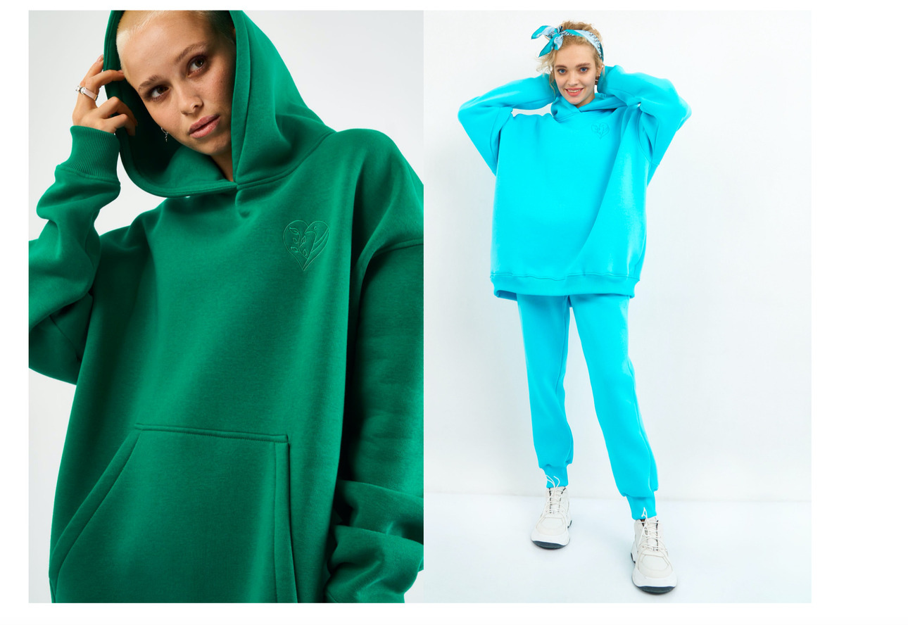 В линейке бренда представлены oversize-худи без начеса для осени и с начесом для зимы. Комбинировать их можно не только с леггинсами или джинсами, но также с пиджаком, мини и ботфортами.