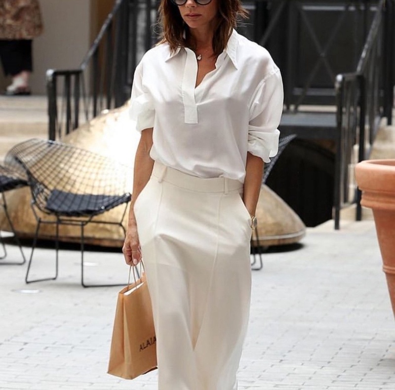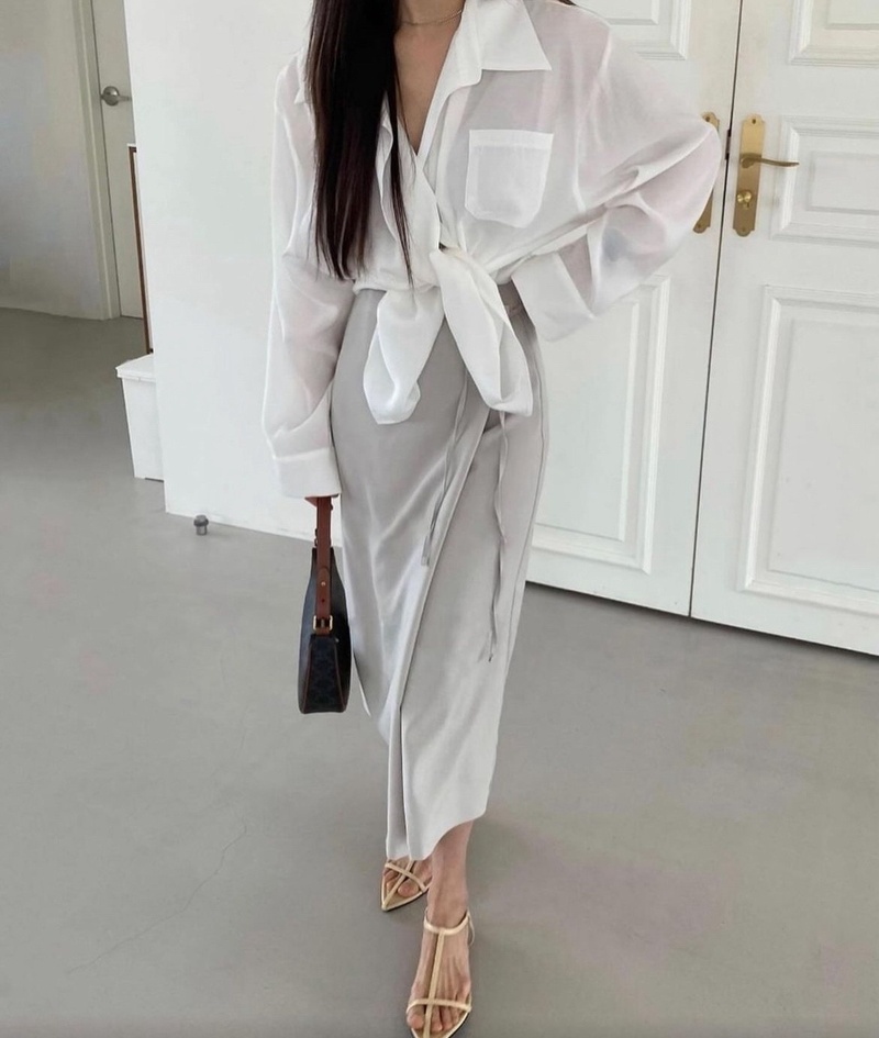 Кажется, скучный комплект, но только в том случае, если вы неправильно подобрали юбку. Наш эксперт рекомендует обратить внимание на летящие модели в длине макси. Кристина: «Легкие юбки и белые рубашки оверсайз — идеальный комплект на теплую весну. Кстати, из обуви подойдут как ботильоны выше щиколотки, так и классические лодочки».