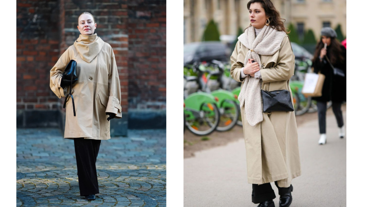 Для создания элегантного, но в то же время игривого образа сочетайте размашистый тренч с шарфом в тон — лучше, если он будет отличаться по структуре.
