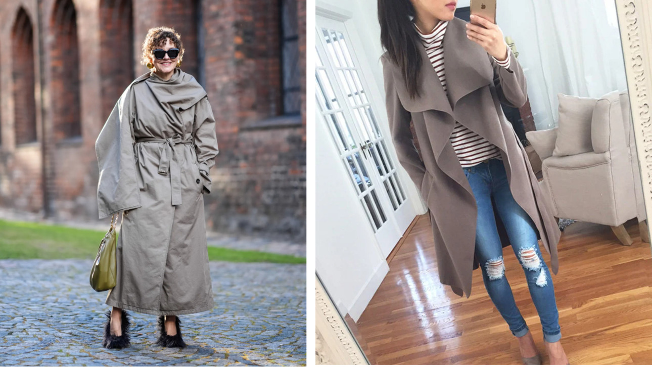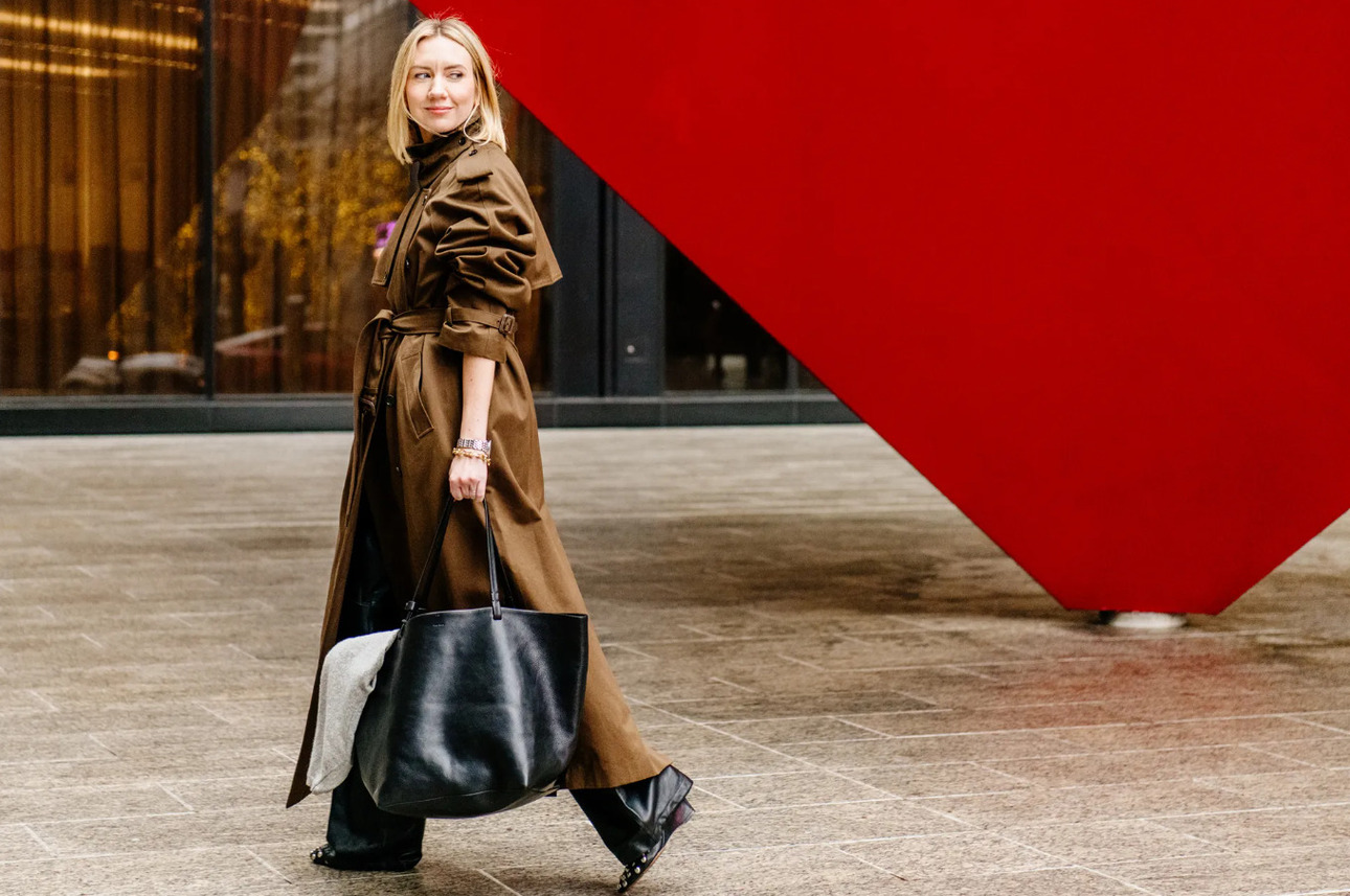 Чтобы создать простой и интересный образ с тренчем, попробуйте поиграть с драпировкой и дополнить ансамбль эксцентричными аксессуарами.