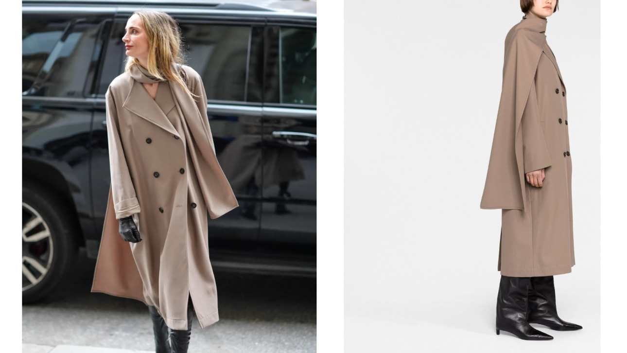 Такой вариант тренча с шарфом, одинаковым по цвету и структуре, создает женственные слои. «Сочетайте его с облегающими сапогам, черными кожаными перчатками. И маково-красным губами», — предлагает Михаил.