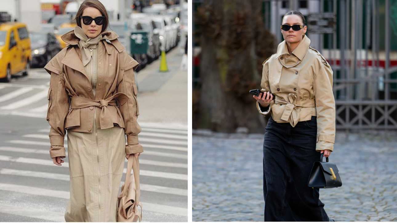 Обрезанные тренчи стали настоящим фаворитом подиумов весной 2024 года. Попробуйте сочетать их с элегантной юбкой-макси любого цвета и ботильонами, сапогами, кроссовками или босоножками, если погода позволяет.