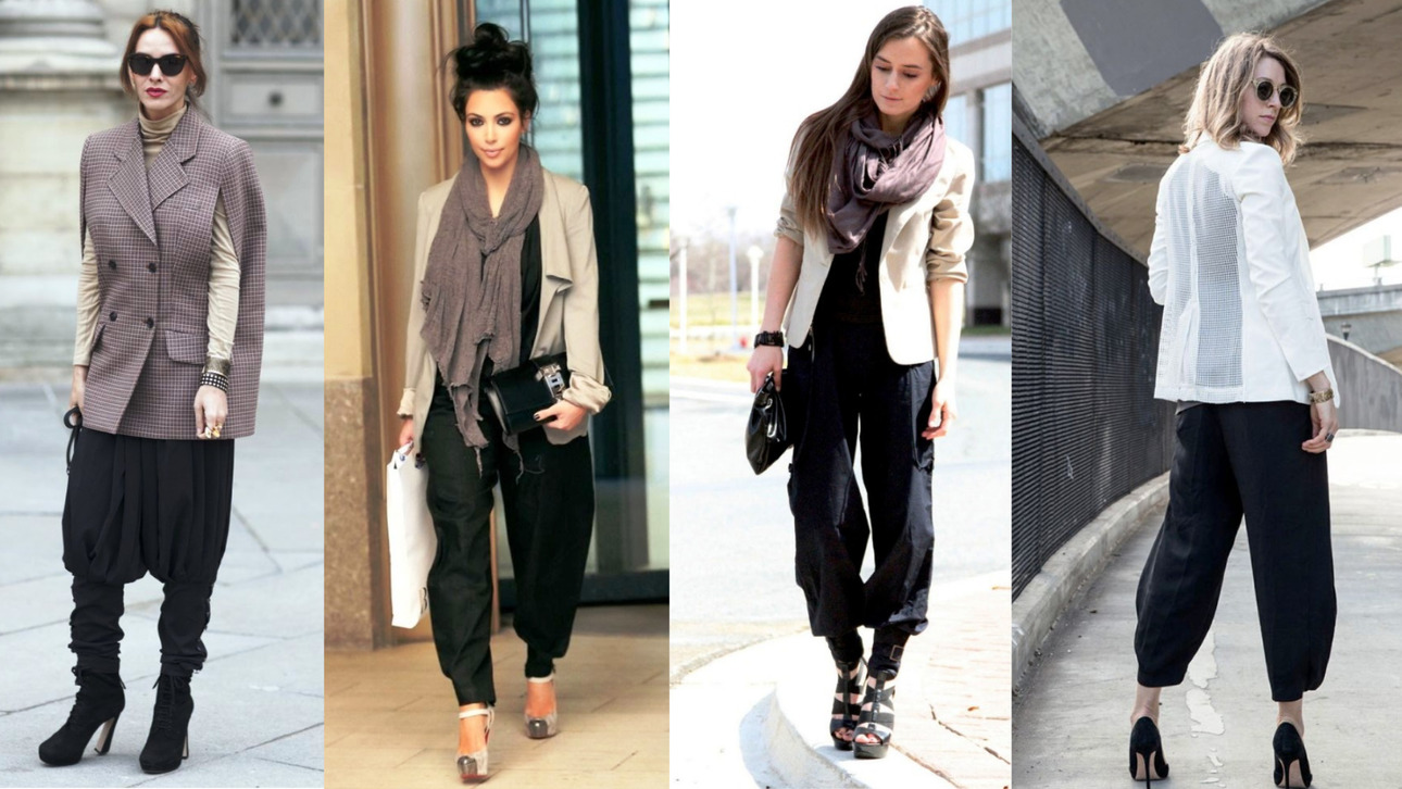 Алладины, которые собираются в складки посередине и спускаются по ногам, многим не идут. Но это не так, нужно просто подобрать правильный фасон. «Убедитесь, что пах не находится сильно ниже середины бедра, а складки спадают удобно, а не беспорядочно.