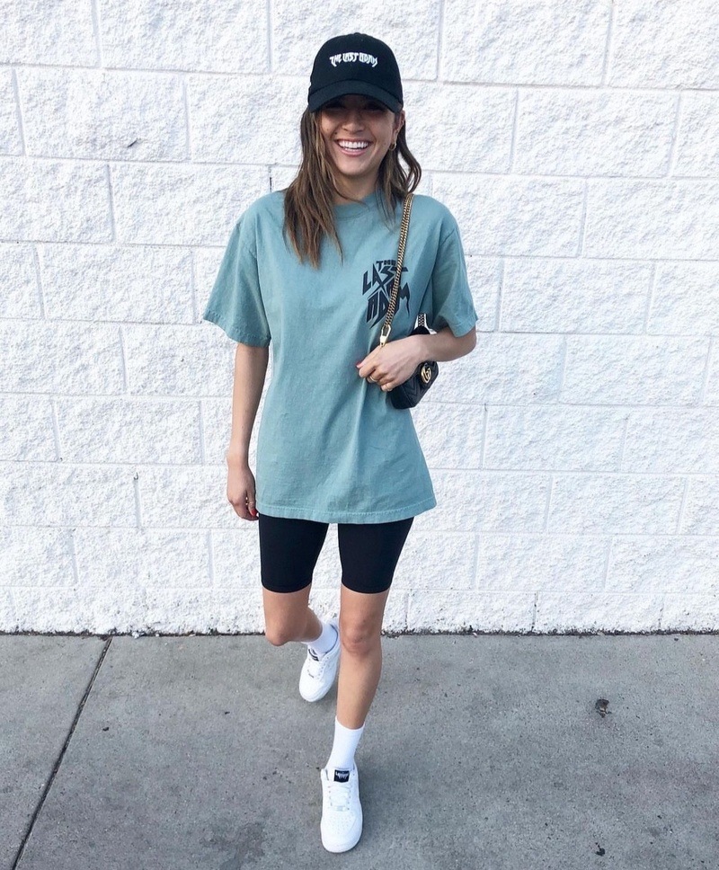 Объемные футболки в стиле boyfriend захватывают летние гардеробы. Александра: «Я настоятельно не рекомендую миксовать такую модель с одноименными джинсами, придерживаемся правила — объемный верх и узкий низ и наоборот». Бойфренд-футболка идеально сочетается с прямыми джинсами и шортами, что будет настоящим спасением в городской жаре.