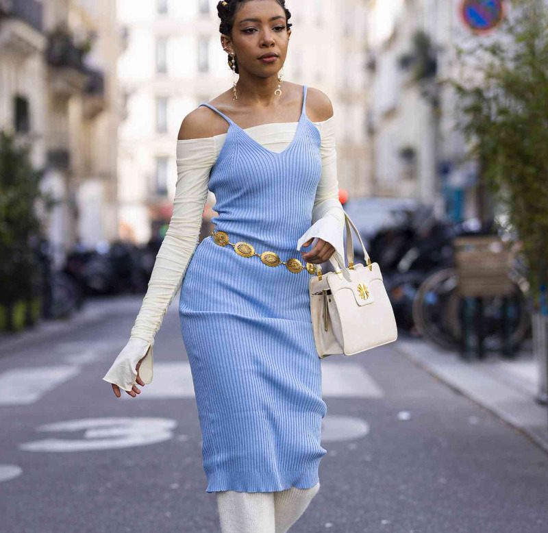 Вариант для смелых девушек. «Лучше всего трикотаж сочетать с вязаным сарафаном, денимом, плотным хлопком или тонкой кожей. Впрочем, это может быть и кружево, и сетка, если вы понимаете, как создать многослойный образ», — рассуждает стилист.