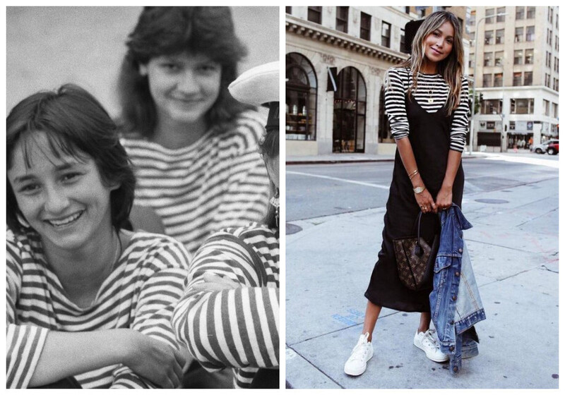Этот тренд до сих пор очень актуален. Ее можно сочетать с базовыми джинсами, юбками или шортами. В советское время девушки носили тельняшки с закатанными рукавами, сейчас это также можно сделать. Для наиболее актуального образа выберите модель оверсайз, также рассмотрите тельняшку с потертостями или бахромой. Это отличный вариант для летнего отдыха на море.