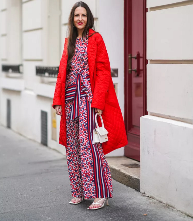 Есть что-то очаровательное и винтажное в том, чтобы накинуть халат поверх пижамы с принтом. «Яркие оттенки алого — это всегда броский вариант, но любой основной цвет объединит этот образ», — говорит стилист.