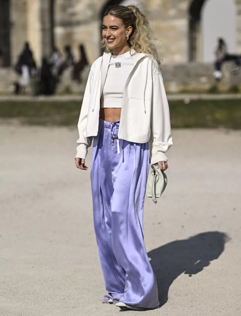 Если вы любите спортивный стиль в своих повседневных нарядах, то этот вариант для вас. «Контраст, созданный такими спортивными вещами, как толстовка с капюшоном и топ в сочетании с атласными пижамными штанами восхитителен», — говорит Алина.