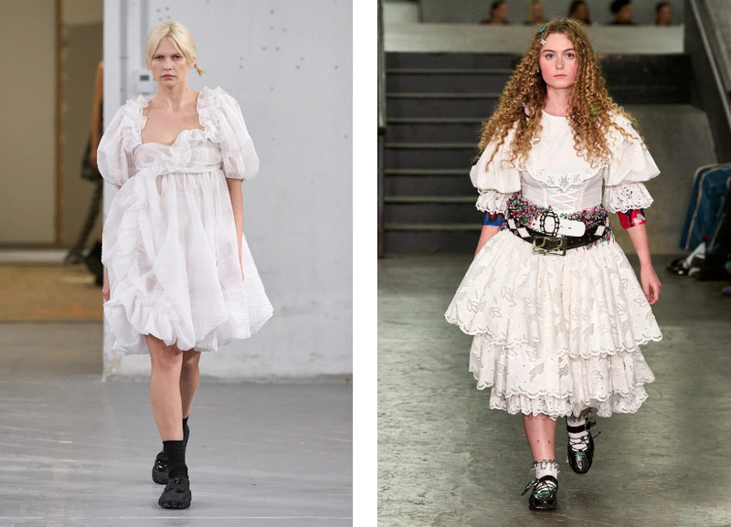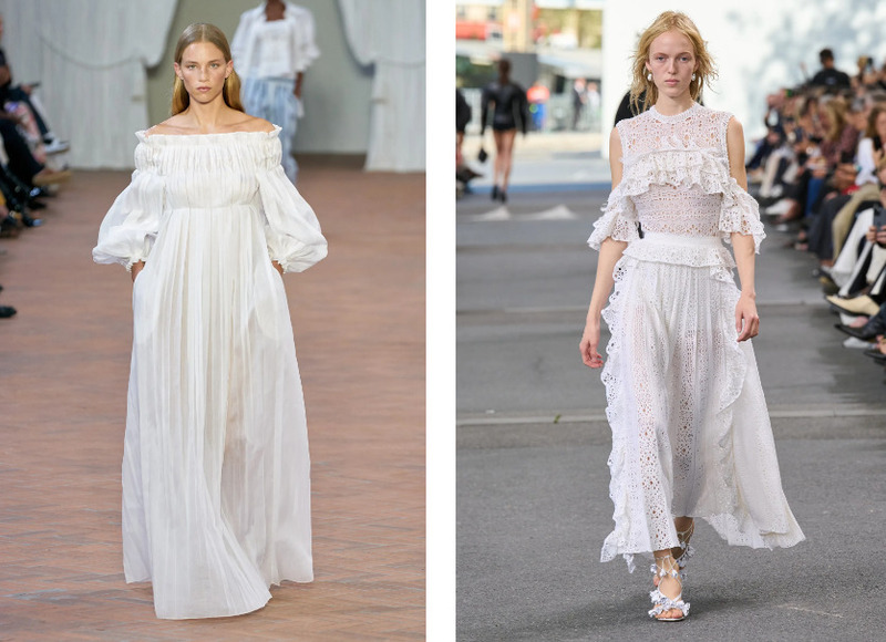 Рукав фонариком, завышенная линия талии, свободный силуэт с поясом, чтобы подчеркнуть фигуру. «Такие платья традиционно выполняются из нежного шитья, батиста, хлопка. Они предполагают простые и женственные украшения и незамысловатую прическу — например, с выбивающимися прядями или вовсе художественно распущенные волосы», — рассказывает стилист.