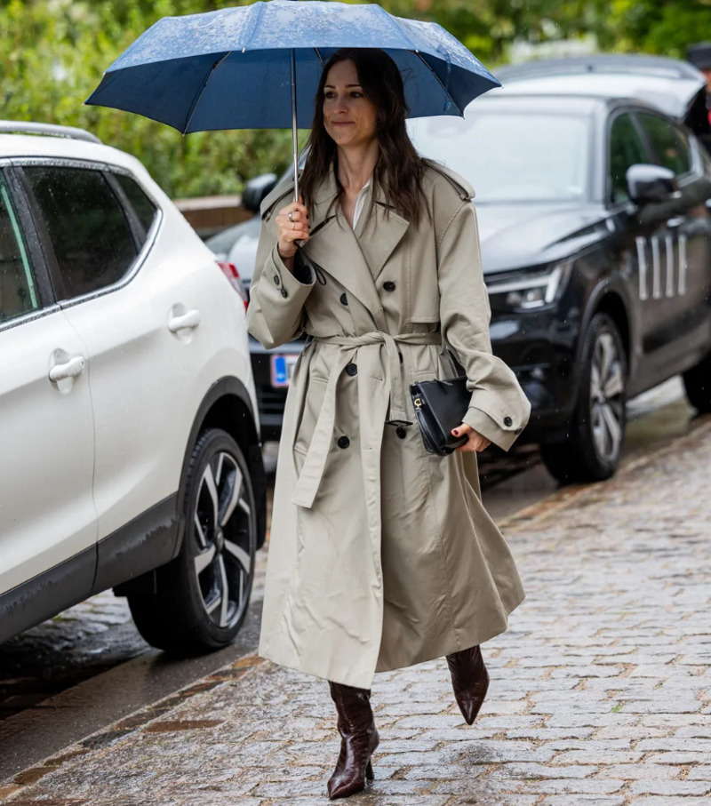 Осень — сезон неизбежных ливней, поэтому возьмите с собой удобный зонтик, а в сырые дни держите поблизости прочный тренч — тем более, что он актуален в этом сезоне. «Выберите двубортный фасон с такими деталями, как завязки на талии и боковые карманы для хранения мелочей. Под него вы можете надеть самые простые вещи — например, джинсы и водолазку или рубашку навыпуск», — говорит стилист.