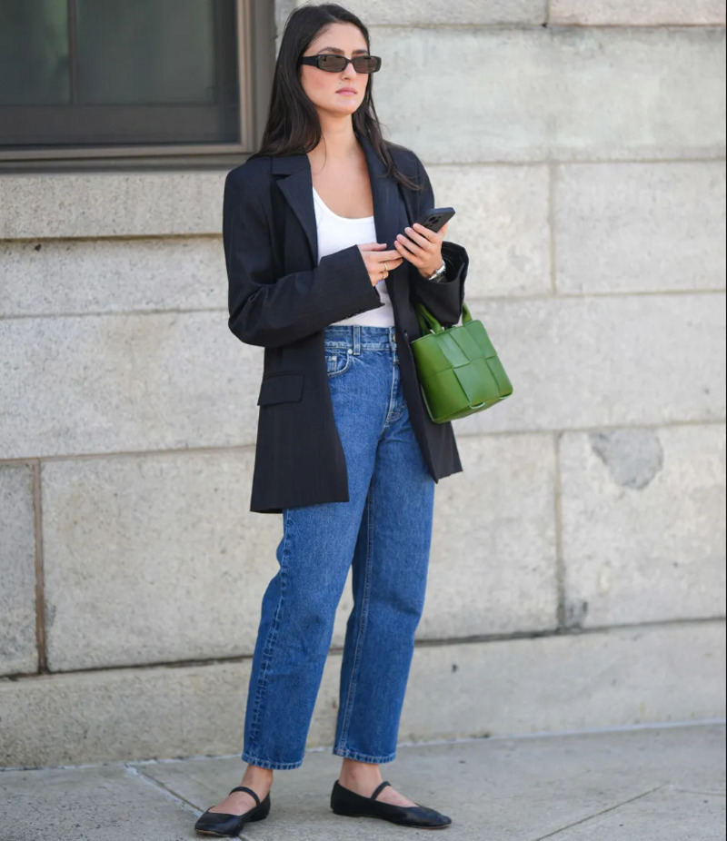 Единственная формула рабочего наряда, которая подходит вообще всем — от секретарши до бизнес-леди — это структурированный блейзер, джинсы с прямыми (слегка укороченными) штанинами и туфли Mary Janes. Идеальный для многих стиль одежды включает в себя вещи, которые не требуют излишних раздумий — это гарантированный способ создания незамысловатого осеннего рабочего наряда.