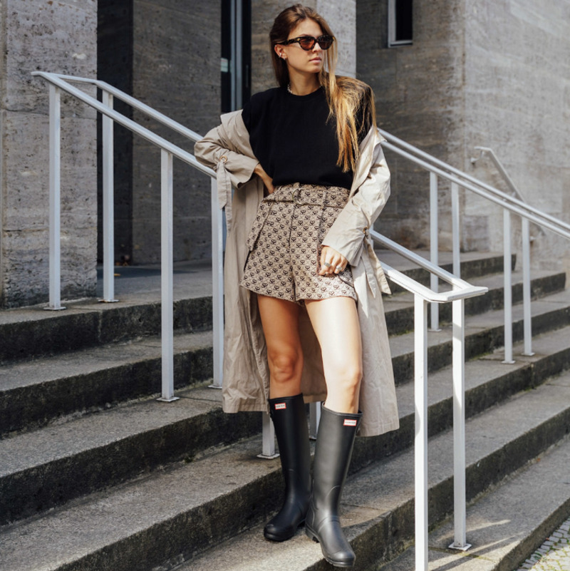 Резиновые сапоги в комбинации с мини-юбкой и плотными колготками создают игривый, но комфортный образ. Этот стиль придаст свежести повседневному гардеробу. «Добавьте куртку-косуху для создания контраста или теплый пуховик для зимы», — советует стилист.