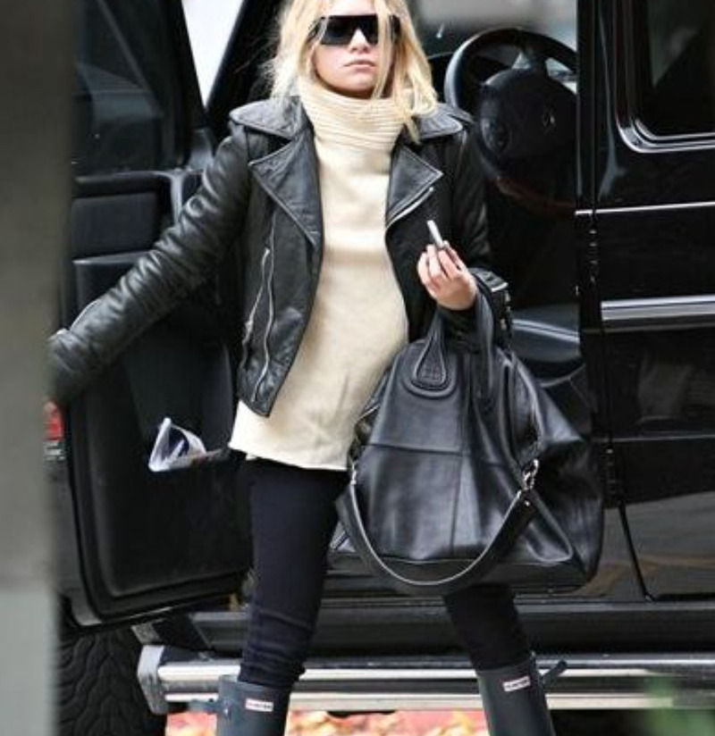 Кожаные леггинсы добавляют выразительности, а классическая рубашка делает образ сдержанным. Резиновые сапоги подчеркнут стиль и добавят небольшую «рок-н-ролльную» нотку. Дополните «лук» жилетом из искусственного меха или легкой курткой для интересного микса фактур.