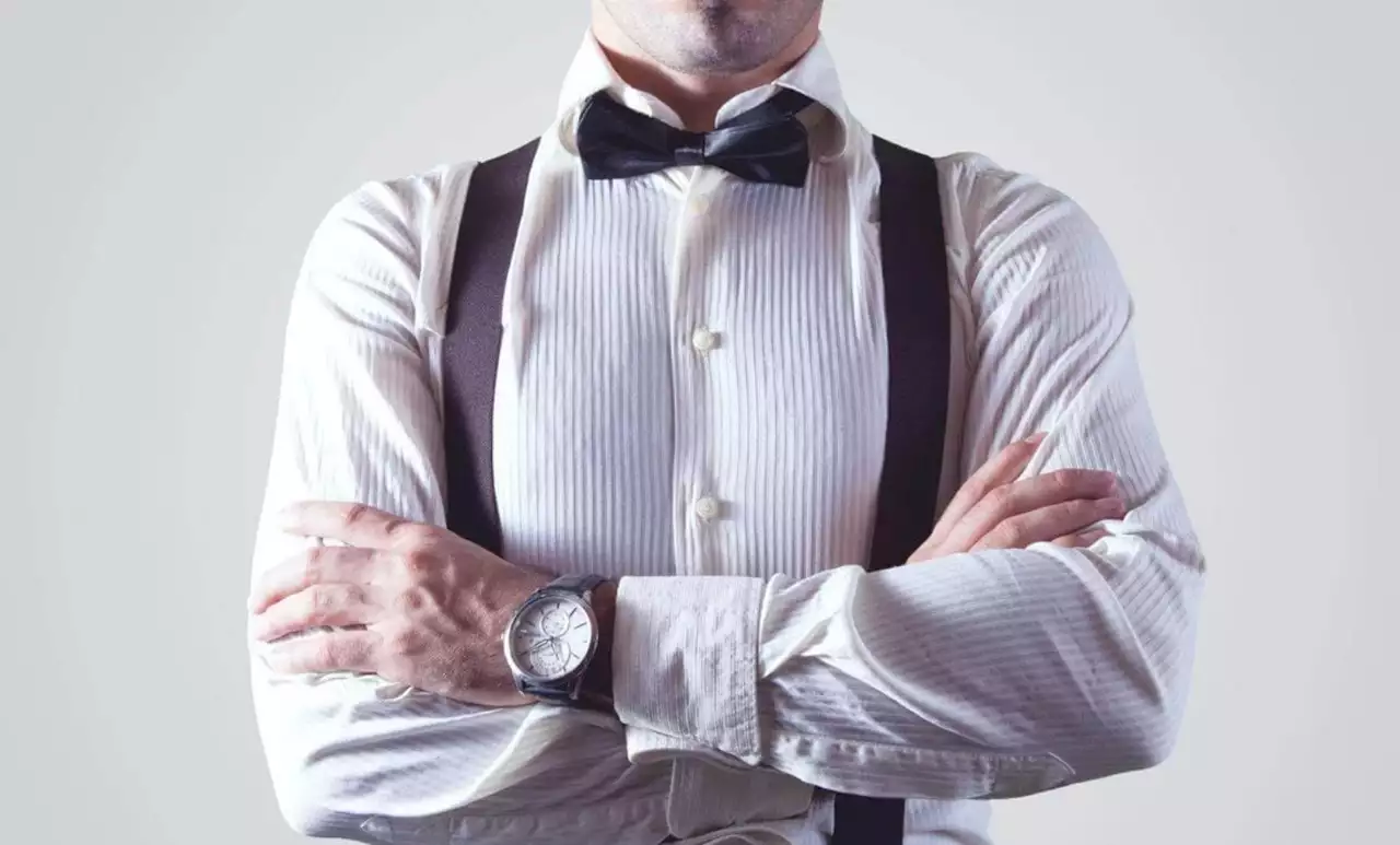 Если бабочка яркая, подтяжки или ремень должны быть нейтральными. Если подтяжки акцентные, остальной образ должен быть спокойным. К ремню можно добавить часы или браслет в тон, чтобы создать гармонию.