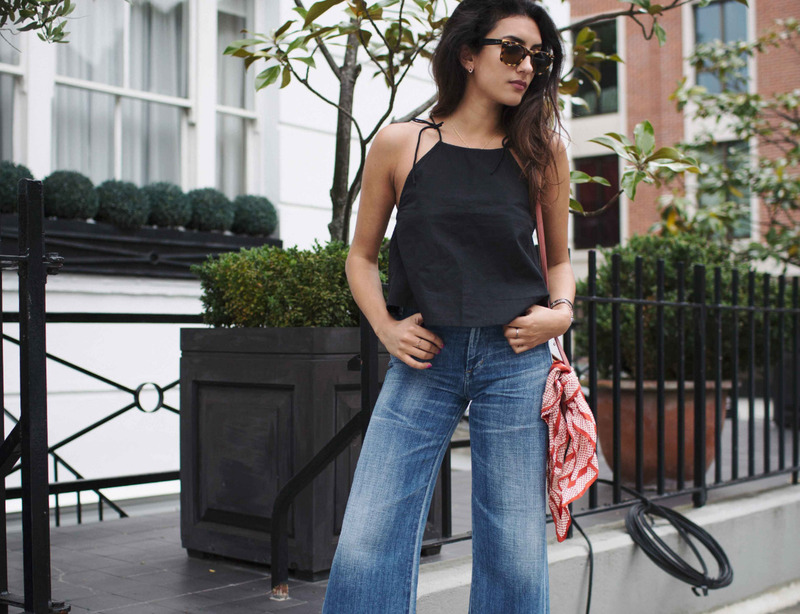 Чтобы уравновесить плотность денима, верх должен быть легким и минималистичным. Отлично подойдут хлопковые футболки, кроп-топы, майки на тонких бретелях, рубашки из вискозы или льна, повязанные узлом. Лайфхак стилиста: джинсы с завышенной талией в сочетании с укороченным топом визуально делают длиннее ноги и стройнее силуэт.