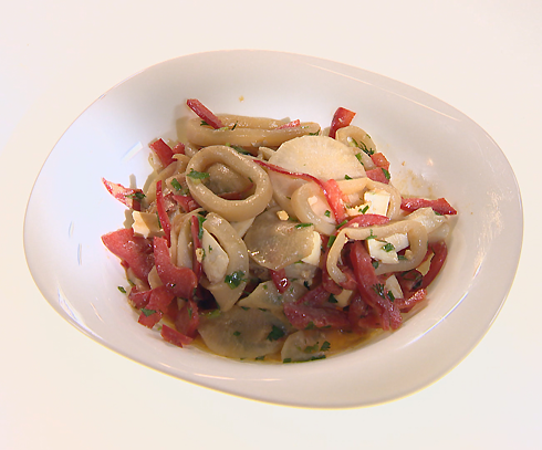 На этот раз Барышня и Кулинар решили приготовить блюда, в которых обязательно будут рыба и кальмары, а также диковинный для многих физалис
