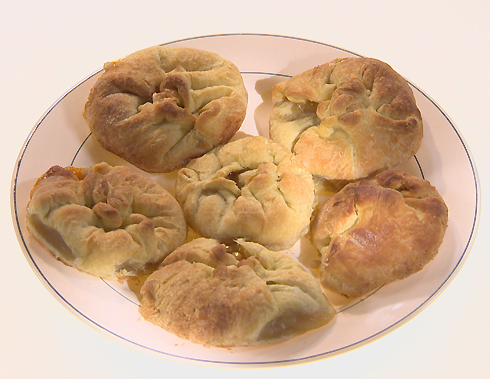 Как готовить: Яблоки очистить от кожуры и натереть на терке. Физалис мелко нарубить. Отжать фрукты от лишней жидкости, смешать, добавить сахар, крахмал и кедровые орешки. Слоёное тесто тонко раскатать, присыпать мукой и нарезать на квадраты. В центр каждого квадрата положить по ложке начинки из яблок и физалиса, а потом слепить углы кусочков теста по центру. Выложить получившиеся пирожки на противень, смазанный растительным маслом, и отправить запекаться в духовку, разогретую до 180 градусов, минут на сорок.