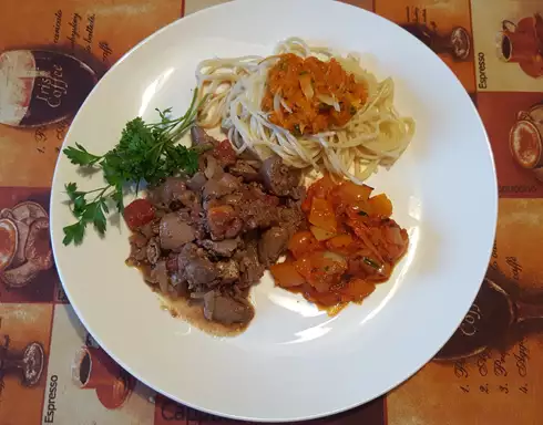 — 400 г. печени птицы (на фото из куриной печени);