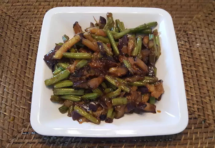 Баклажаны с зеленой фасолью по-китайски