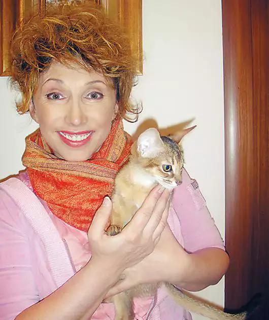 Артистка тренирует нового члена семьи — котенка абиссинской породы, который был приобретен звездой в качестве подарка на день рождения дочери.