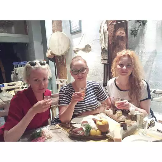 «Как же это прекрасно вот так с подружками в баню сходить, потом в ресторанчике дико вкусном посидеть с наливочками, муксуном и всякими крабами, рыбками и прочими таёжными вкуснятинами! Ну и пусть на часах почти 11 вечера! Жизнь должна быть в удовольствие!», — поделилась ведущая снимком, на котором она сидит в предбаннике вместе с подругами, в числе которых особо прозорливые могли распознать актрису Жанну Эппле. Кстати, этот тот редкий случай, когда звезды показали свои снимки без косметики.
