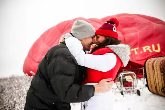 «Внезапный романтик», — подумала Анна и вместе с Артемом поднялась на борт воздушного судна. То, что произошло потом, по словам Анны, было похоже на настоящую сказку. На высоте 450 метров, пролетая над живописными окрестностями города Дмитрова, Артем вдруг сказал: «Это не просто воздушный шар, это символ моей любви к тебе. Моя любовь такая же яркая, всеобъемлющая, и она поднимает меня все выше и выше в этой жизни». С этими словами он достал из кармана заветную коробочку и произнес: «Я всегда хочу быть с тобой. Ты самое лучшее, что есть у меня». И добавил: «У тебя небольшой выбор: „да“ или „неееееееееееееет“. Помни, что мы в воздухе!»