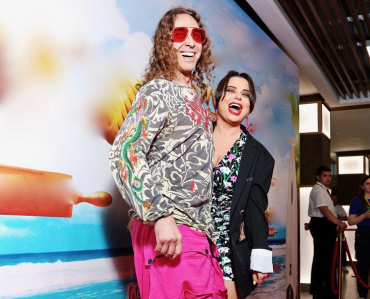 Анастасия Макеева пришла со своим мужем Романом Мальковым, а также с пасынком, который вывел в свет невесту. Журналисты ревностно изучали, сможет ли будущая невестка затмить звездную свекровь. По единодушному мнению, кинозвезда так и осталась вне конкуренции - и в своей семье, и в звездном собрании.