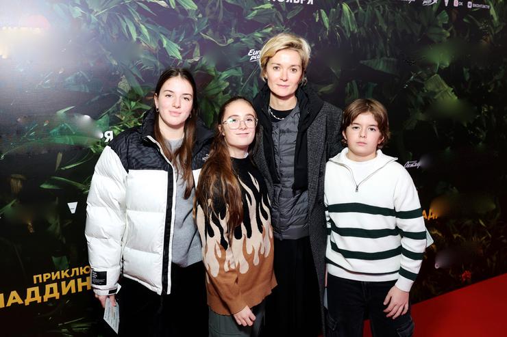 Младшая дочь Никиты Михалкова показала редкий семейный выход. С Надеждой пришли ее дети от брака с Резо Гигинейшвили: 13-летняя дочь Нина, 11-летний сын Иван, а также 11-летняя племянница Лида, дочь Анны Михалковой и Альберта Бакова.