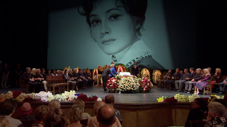 Многочисленные поклонники встретили гроб с телом Ирины Мирошниченко перед выходом из театра цветами и традиционными аплодисментами. Актрису похоронят на Троекуровском кладбище.