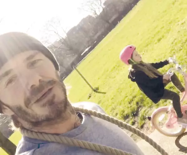 В опубликованном в соцсети видео Дэвид Бекхэм показал, как его пятилетняя дочь смело рассекает на двухколесном велосипеде без задних опорных колес по аллее в парке. Снимающий Харпер футболист вынужден был бежать за девочкой, едва успевая ловить ее в кадр своего смартфона. «Харпер впервые едет сама, без посторонней помощи», — сообщает поклонникам запыхавшийся Дэвид. И добавляет: «Я так горжусь тобой, малышка!»