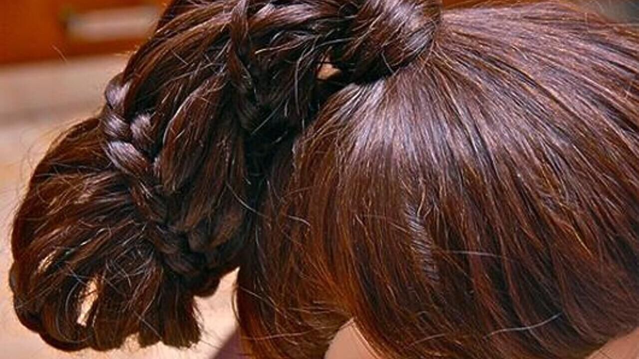 2. На первой половине головы получается коса с остатками не заплетенных прядей.