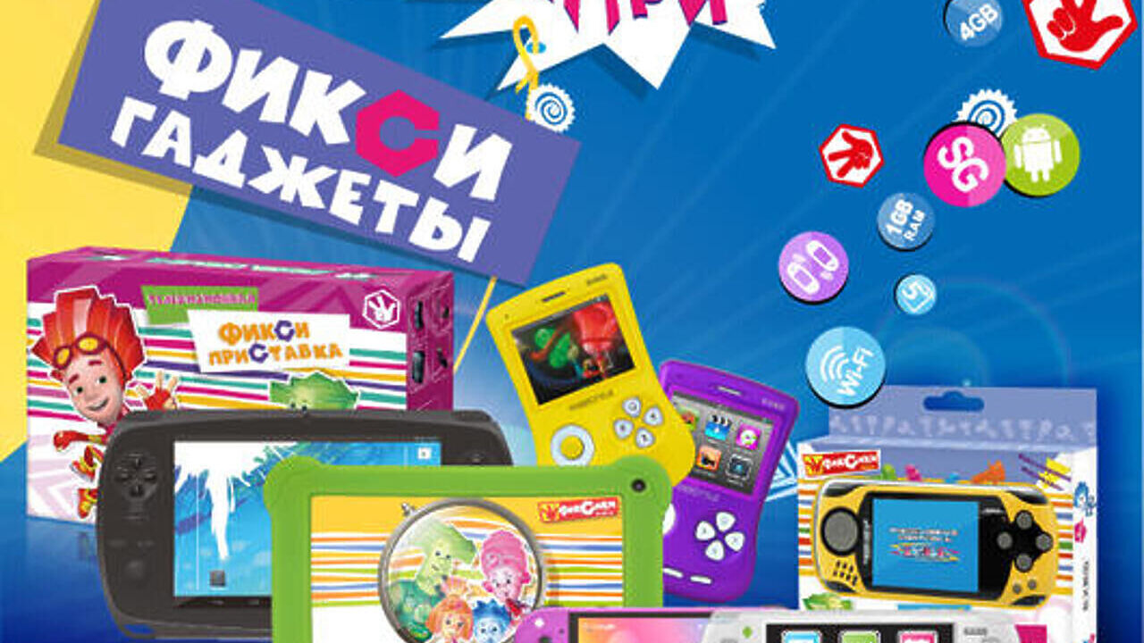 Среди представленных фикси-гаджетов: планшетный компьютер Фикситаб, игровые Фикси-приставки под управлением OS Android, мультимедийные портативные игровые Фикси-приставки и стационарная Фикси-приставка с подключением к телевизору.