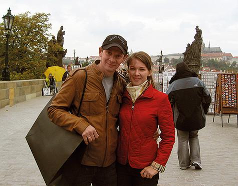 8. «Бывает, что моя жена Света ездит со мной в командировки. Эту фотографию мы сделали в Праге, где на тот момент я снимался в фильме „Лектор“. Но сейчас по объективным причинам Светлана не может часто и надолго отлучаться из Москвы. Все-таки у нас трое малышей, младшему из которых, Андрюше, всего семь месяцев. Кроме того, она учится в престижном вузе на дневном отделении. При этом ни разу не брала академический отпуск — ни будучи в положении, ни по уходу за детьми. И при этом все успевает!»
