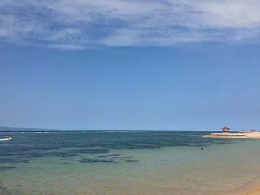 В восточной части Бали, в Сануре, куда мы перебрались через несколько дней, ситуация получше. И волны не сбивают с ног, и вода прозрачная, даже белый песок присутствует. Однако почти у самого берега в воде растут какие-то не то камыши, не то даже пальмы. Поэтому плавали мы по колено в воде, страшась заплывать в район этих зарослей.