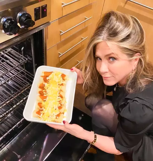 Любимая многими актриса встретила День благодарения в кругу близких друзей. Приятели приготовили несколько блюд, зажгли свечи и весело провели вечер. Особенно всем запомнилась шутка Дженнифер, приготовившей традиционное мексиканское блюдо «энчиладас» специально для друга по имени Джимми. Энистон не пожалела несколько часов, чтобы самостоятельно приготовить мясные рулеты, завернутые в кукурузной лепешке.