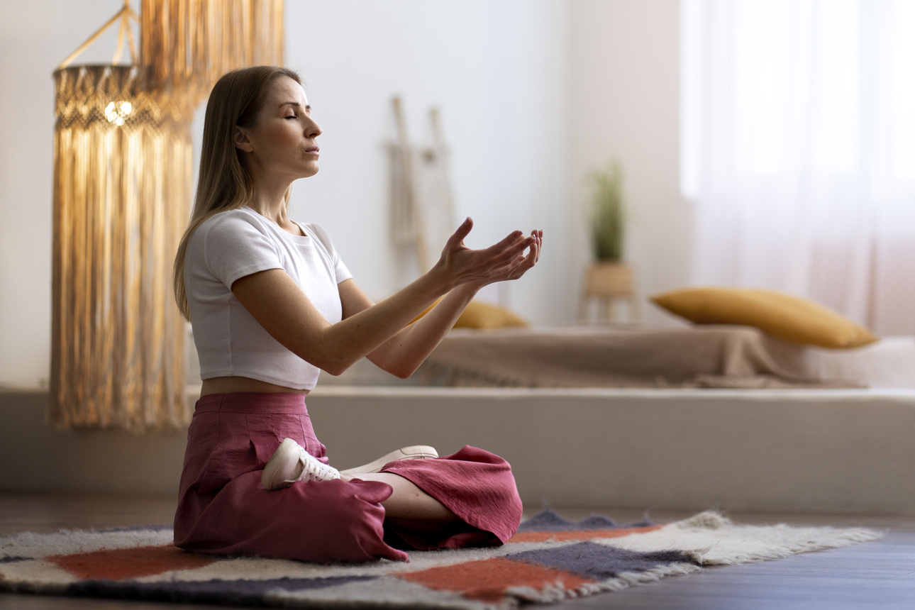 „Сядьте поудобнее, сделайте три глубоких вдоха. Положите руки на живот. Произнесите: 'Я возвращаю себе то, что отдала. Мое внимание. Мое право. Мое чувство“. Подышите еще немного. Почувствуйте, что вы дома».
